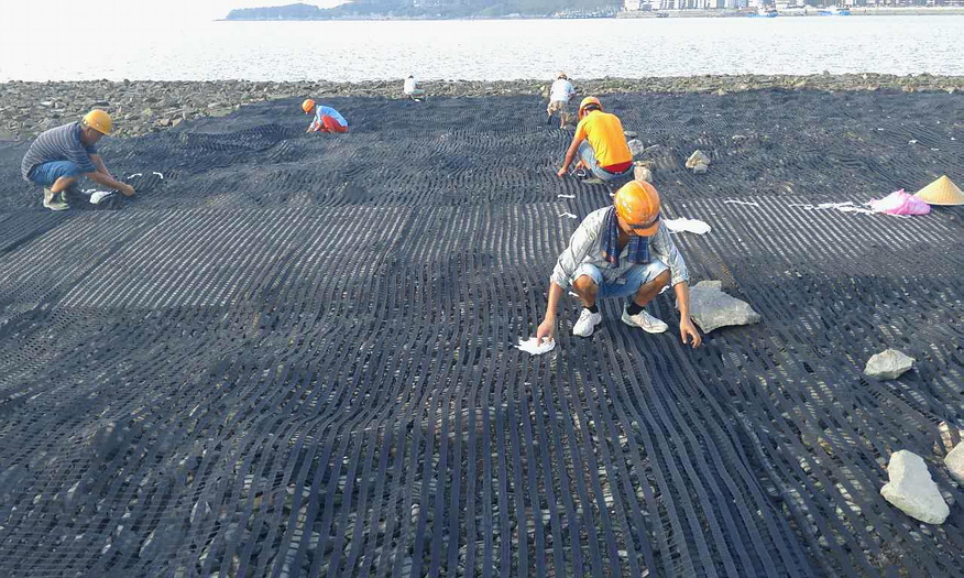 浩珂公司提供的土工合成材料,充分理解和掌握处理区域工程性质,利用其较高的抗拉强度、良好的透水性能和耐久性,将具有针对性的土工合成材料铺设在软土地基表面,再在其上填筑一定厚度的砂垫层(砂土或砾石土),在荷载的作用下产生地基沉降,同时在其周边地基产生侧向形变和部分隆起时,使基础底部的土工合成材料产生拉应力。而作用于土工合成材料与地基土间抗剪阻力,就能相对地约束地基的位移,并且作用在土工合成材料上的拉力,也能起到支承荷载的作用。